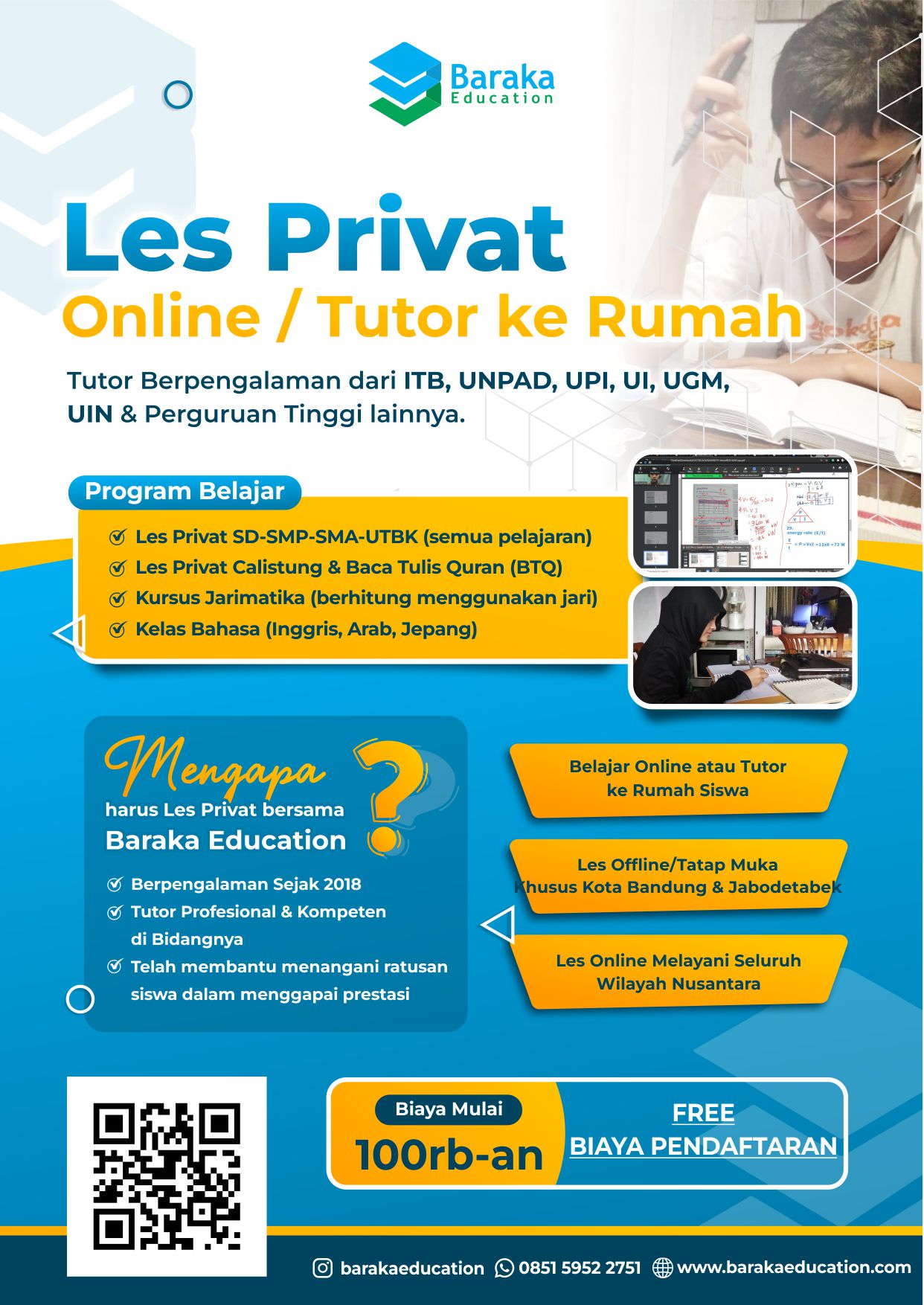 Baraka Education merupakan lembaga pendidikan les privat SD-SMP-SMA-UTBK sejak tahun 2018 yang menggunakan konsep pembelajaran interaktif secara tatap muka ataupun online dan siap membantu Ananda dalam menggapai prestasi.